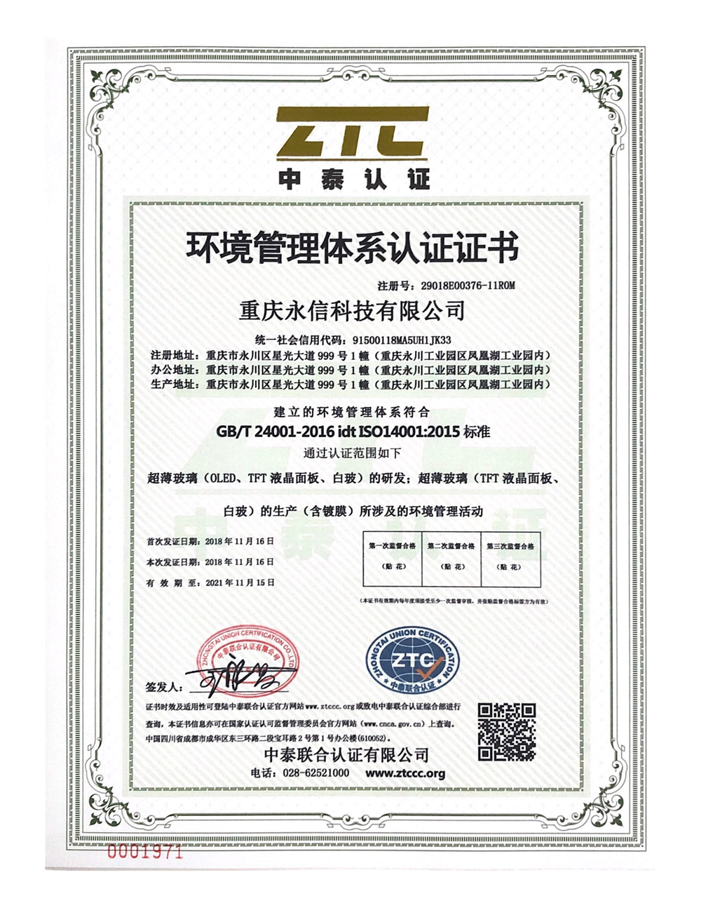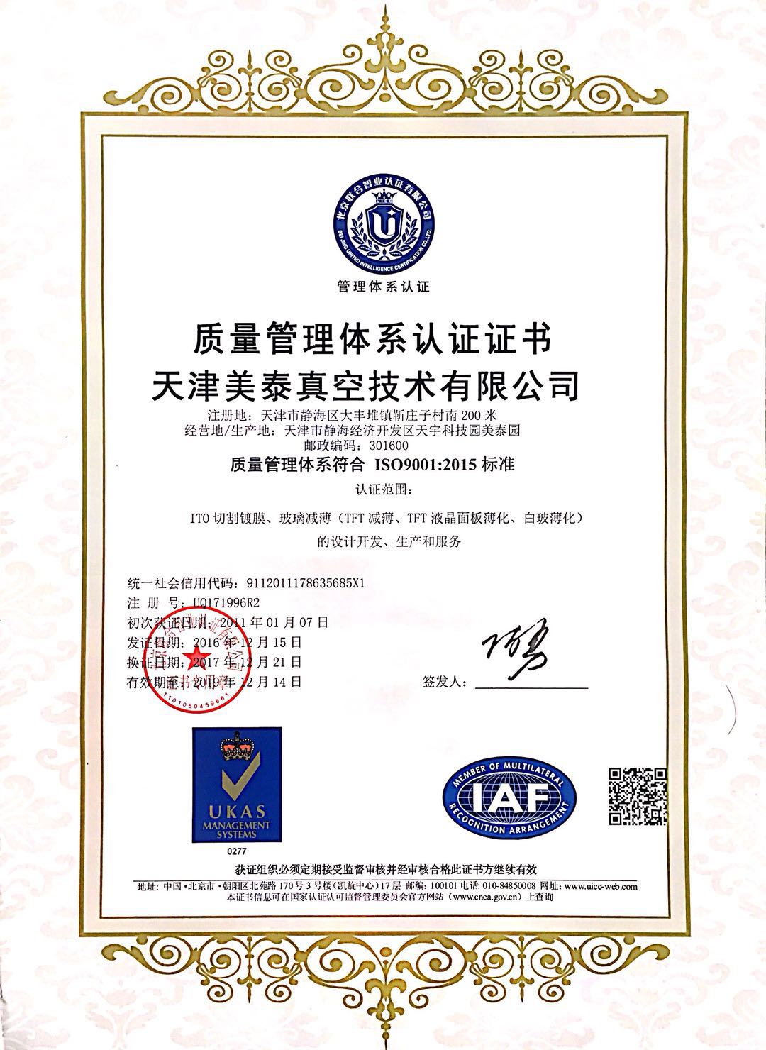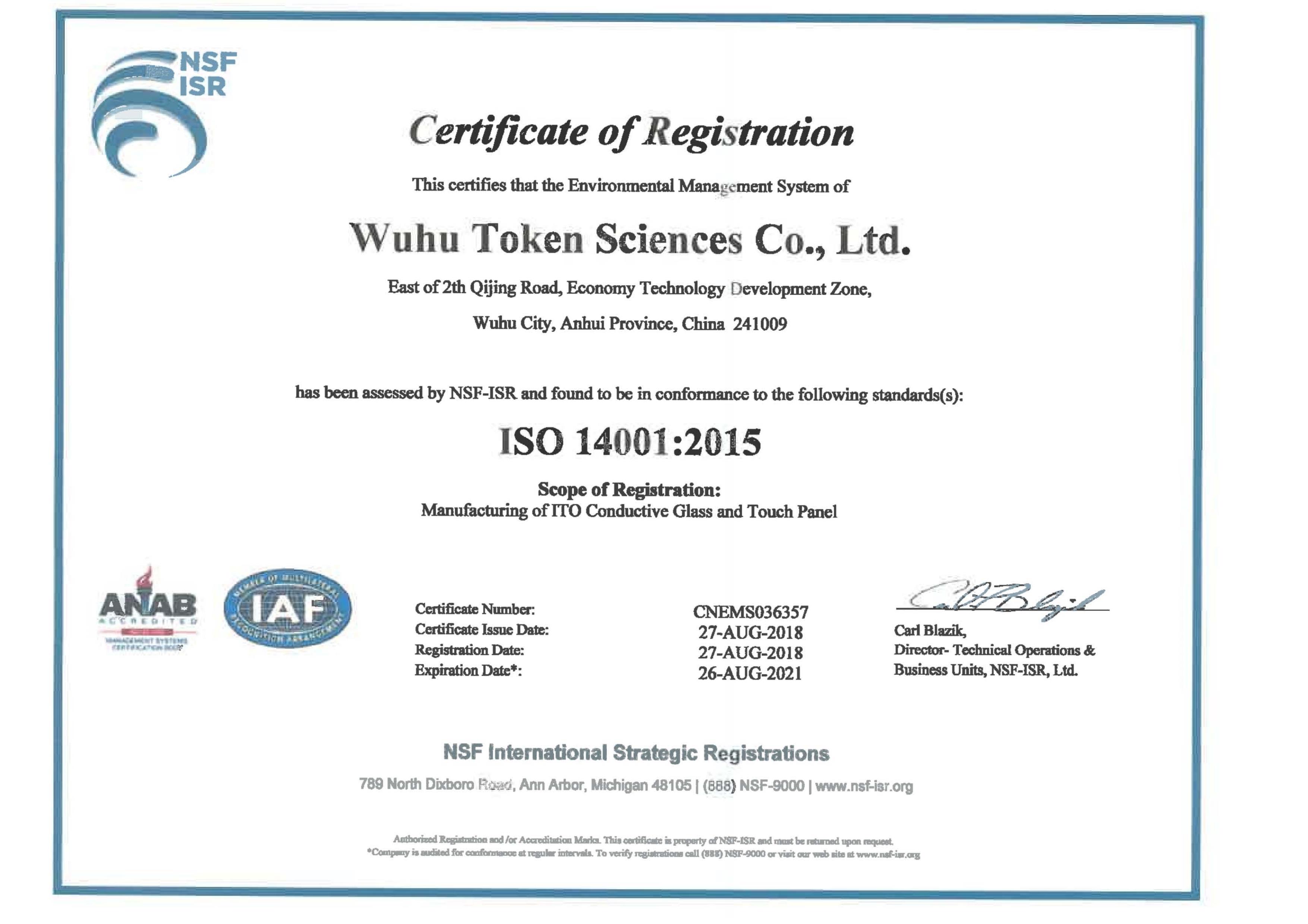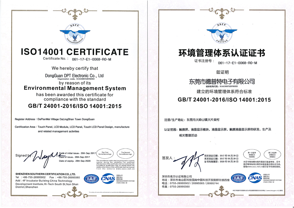 ISO14001-2015環(huán)境管理體系英語証明書