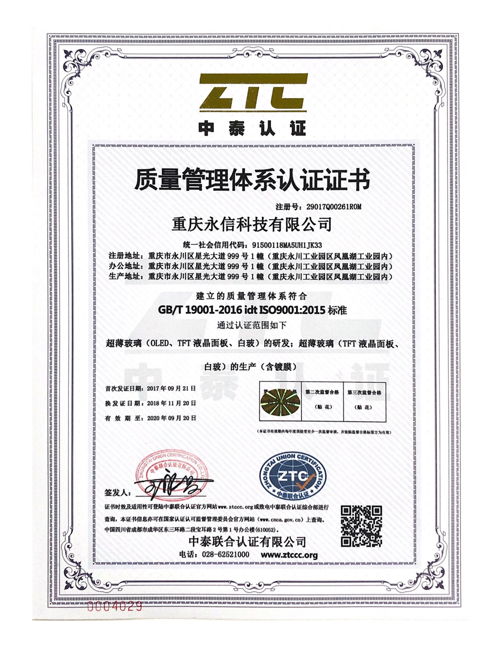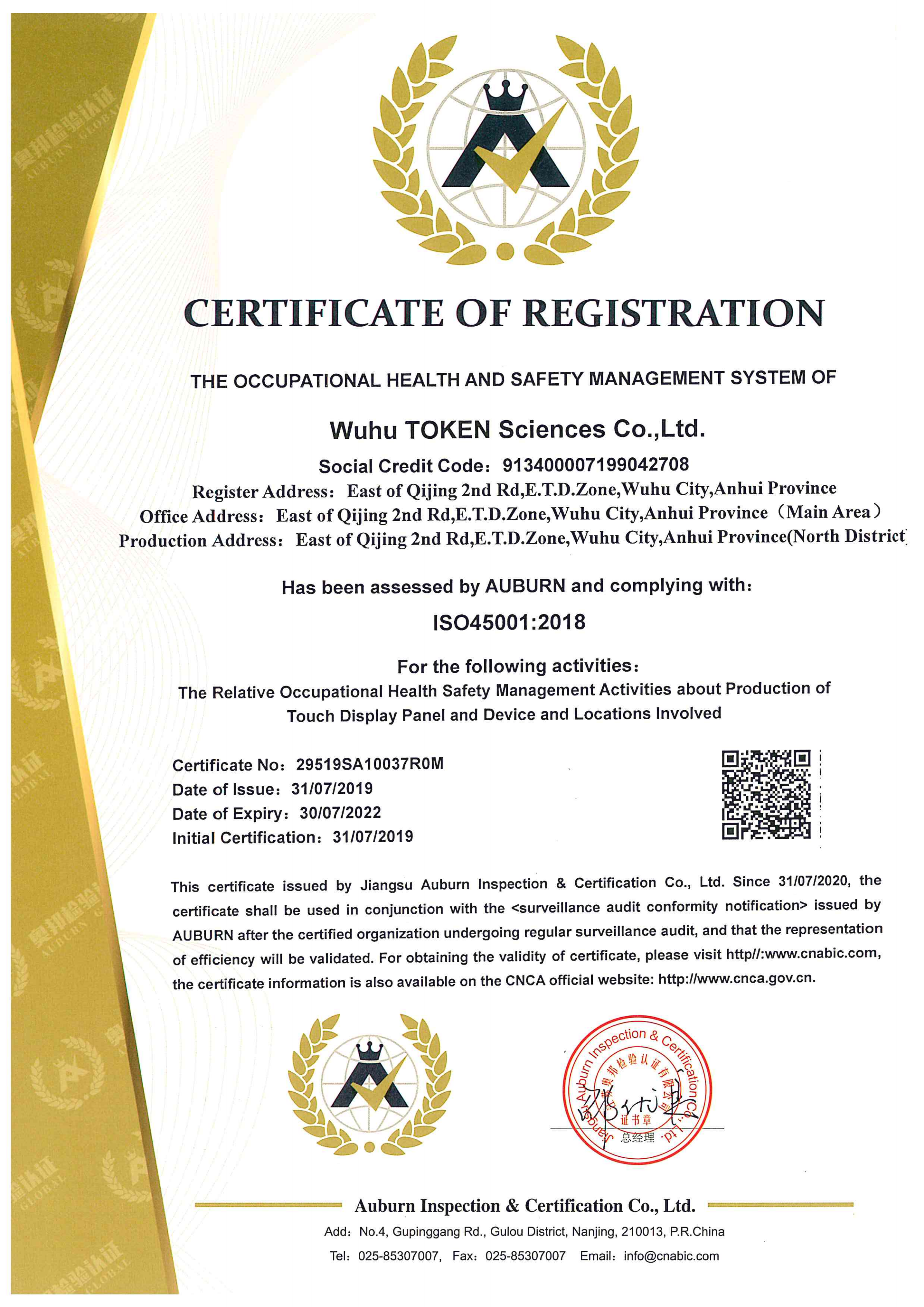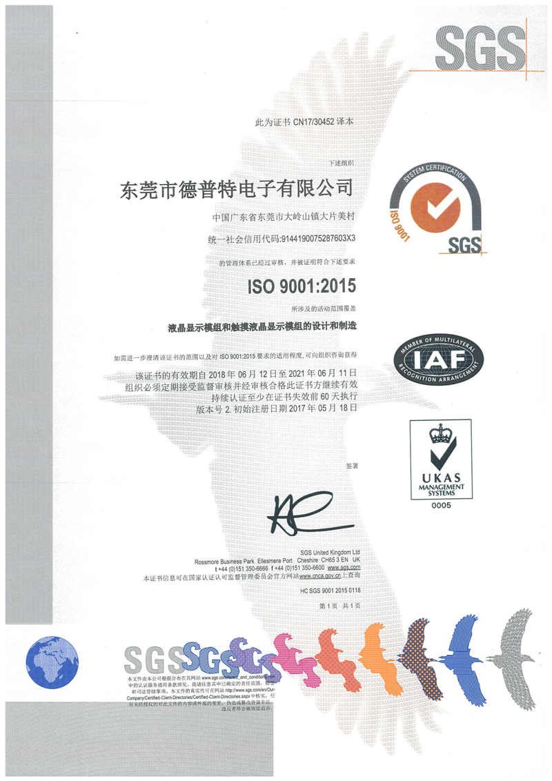ISO14001-2015環(huán)境管理體系英語証明書